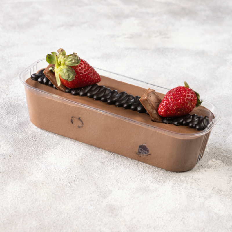 Smooth chocolate mousse topped with crunchy almonds for a perfect balance of rich and nutty. -